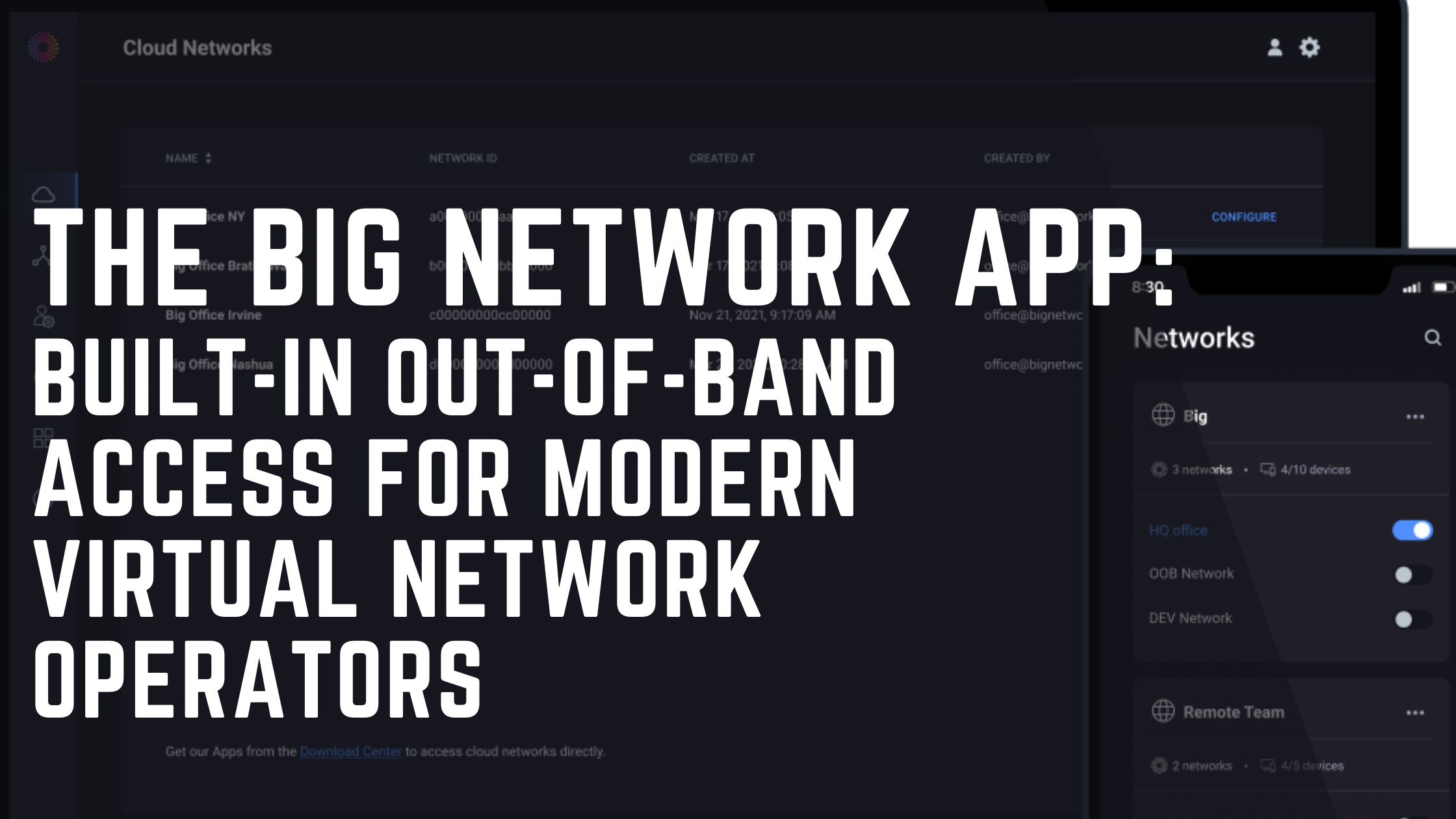 Out-of-band (OOB) networking has long been treated as an afterthought — a bolt-on VPN solution that struggles to scale and creates unnecessary risk. The Big Network App changes that by integrating OOB directly into the same cloud-managed fabric that powers Big Network’s Unbreakable Internet and Static IP Anywhere services. For Virtual Network Operators (VNOs) and Managed Service Providers (MSPs), the app enables secure, identity-driven access to remote networks from any device, across any available WAN path. It dynamically discovers multipath connectivity, enforces micro-segmentation, and delivers unified orchestration across all endpoints — without manual certificate distribution or complex VPN configurations. In short, the Big Network App turns laptops and mobile devices into first-class peers within the network, giving operators real-time visibility and control over remote sites. The result is stronger resilience, simpler operations, and new service opportunities — all without the overhead of legacy VPN systems.